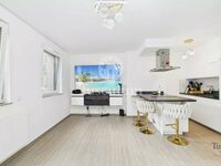 Cuisine moderne avec îlot, ouverte sur un séjour convivial