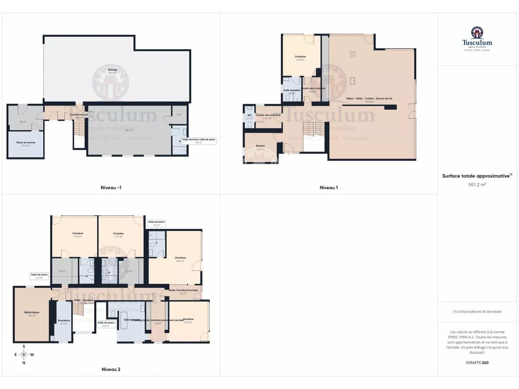En sous sol : salle de fitness avec sauna , garage 6 voitures, chaufferies